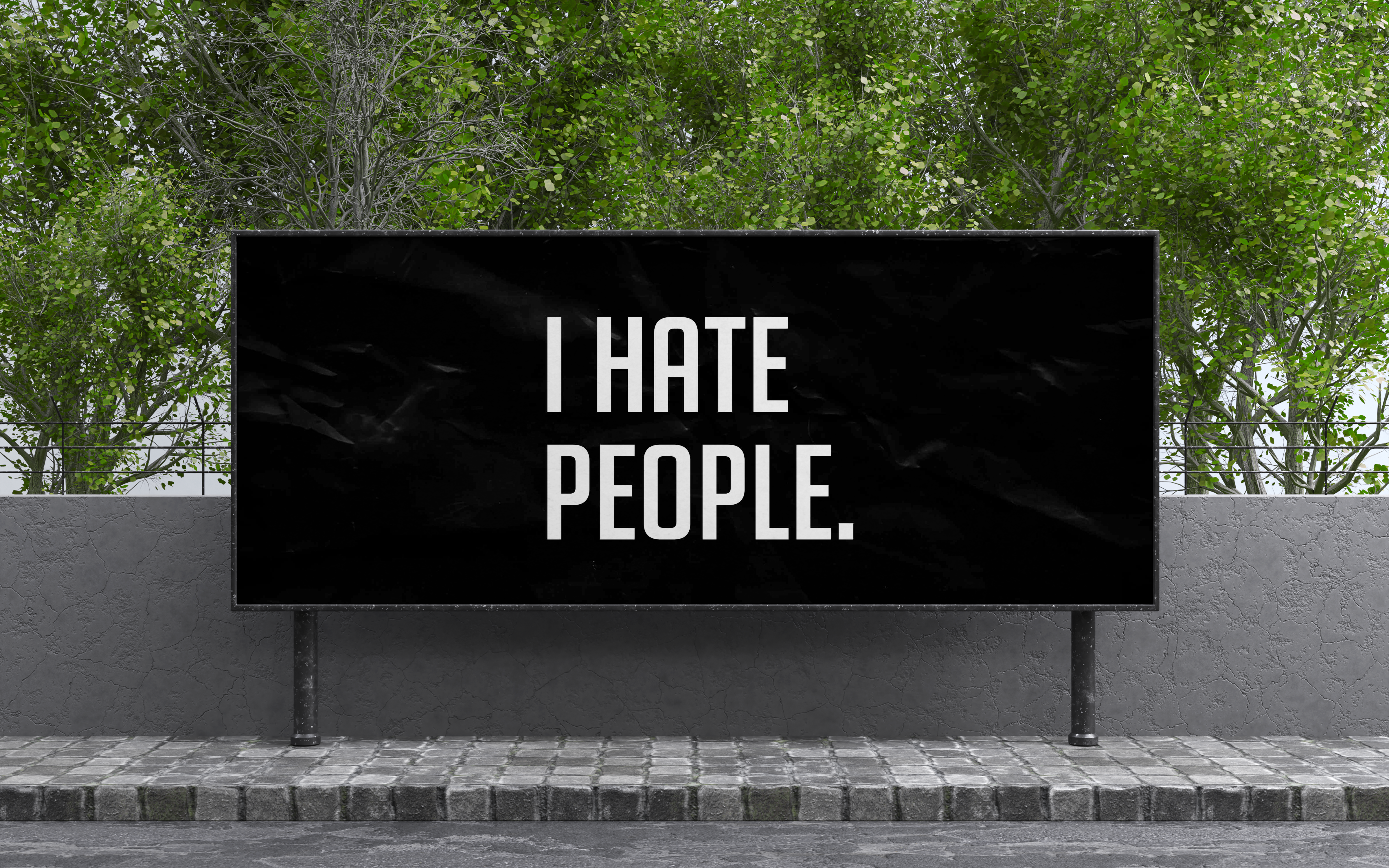 The mockup image features a billboard in an outdoor setting with lush greenery in the background. The main object is a large rectangular billboard mounted above a stone pavement and in front of a gray wall. The blank billboard provides ample space for showcasing advertisements or messages, with a dark background that offers striking contrast for visuals or text. Ideal for promoting events, products, or announcements, create your own eye-catching design using the mockup generator and share your creations to captivate your audience on social media!