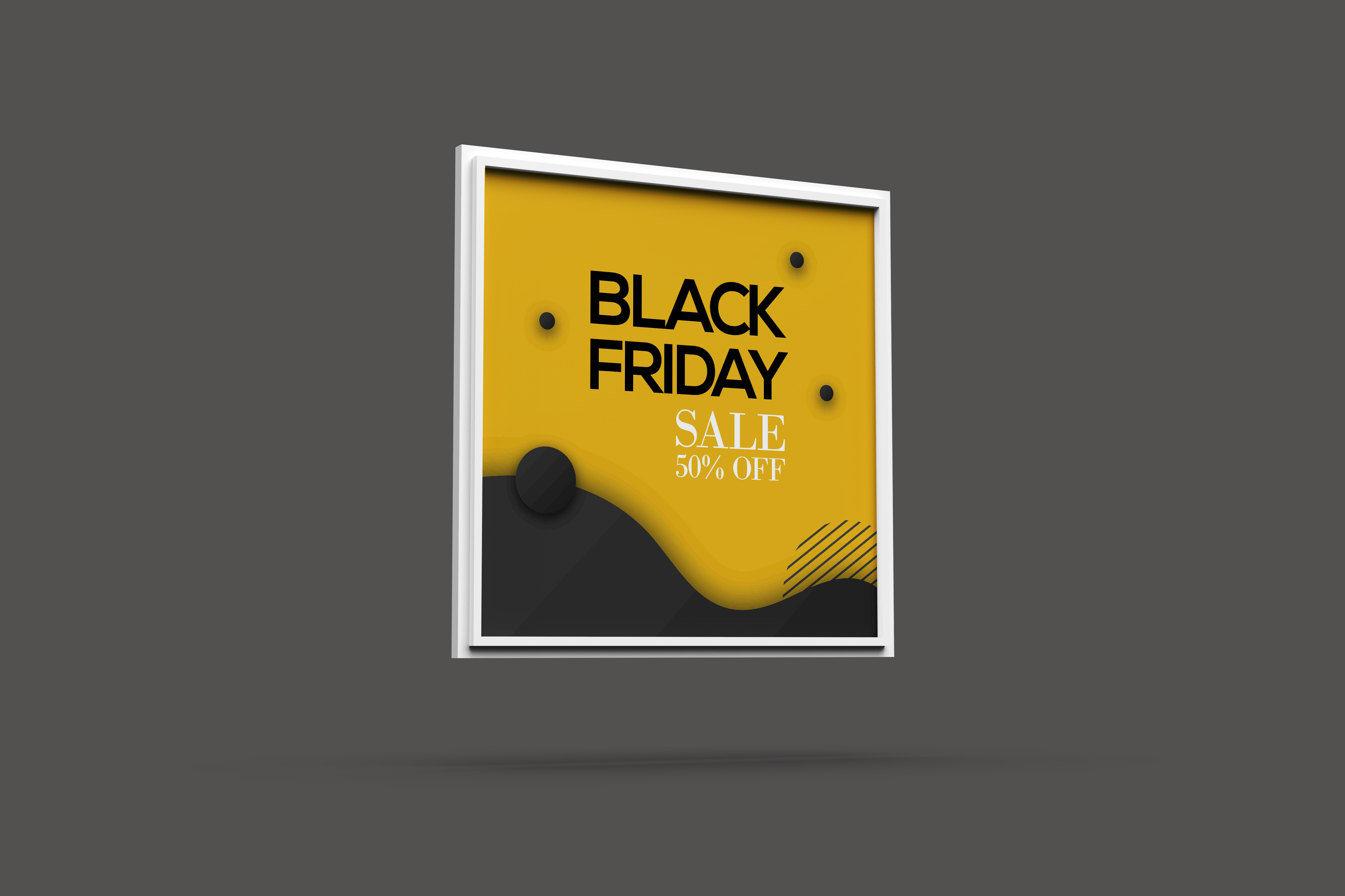 A black friday sale template displayed on a mockup against a gray background.