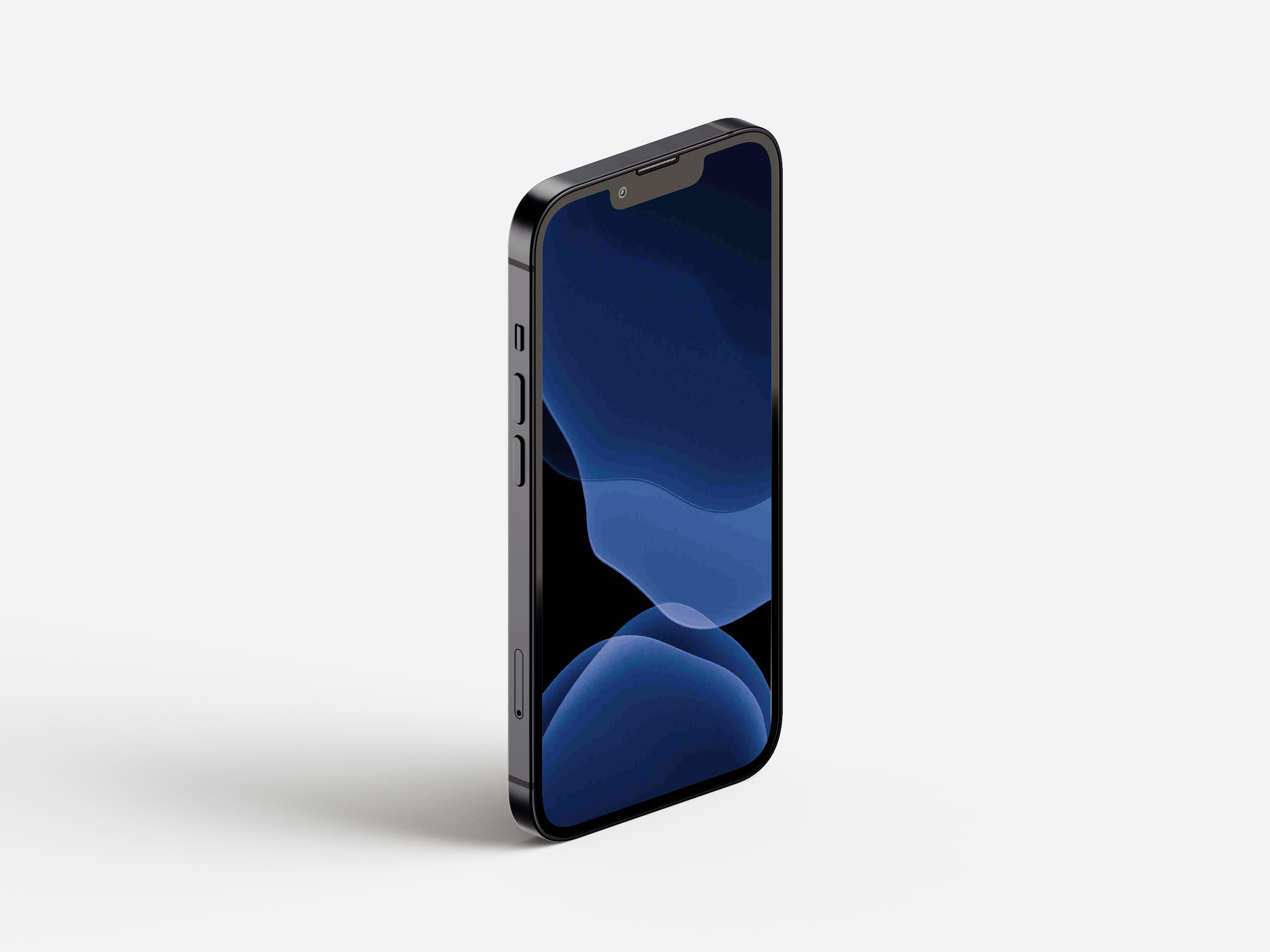The mockup image features a sleek smartphone in an upright position against a plain white background, highlighting its modern design. The phone's design includes a minimalistic, black frame with side buttons, and a display screen showing an abstract blue wave pattern. Ideal for showcasing your app or website, this mockup grabs attention with its clean and professional look. Use our mockup generator to create your design and share it on social media to captivate your audience!