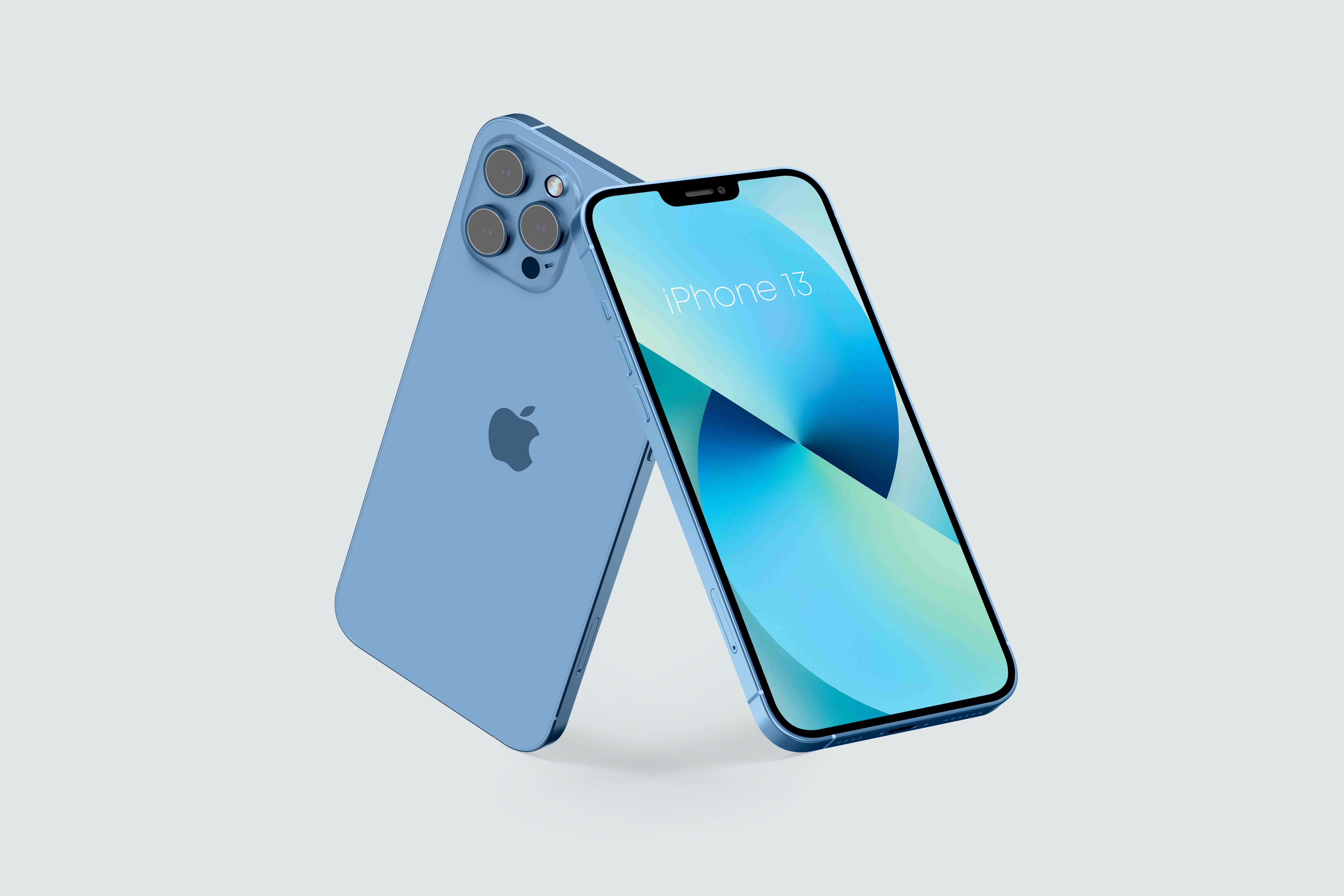 The mockup image showcases a blue smartphone in a clean, minimalistic setting with a light grey background. The phone features a sleek design with rounded edges, a prominent camera system on the back, and a vibrant display. You can utilize this mockup to promote a new app, mobile service, or phone accessory. Start creating eye-catching advertisements now and share your stunning design on social media using our mockup generator!