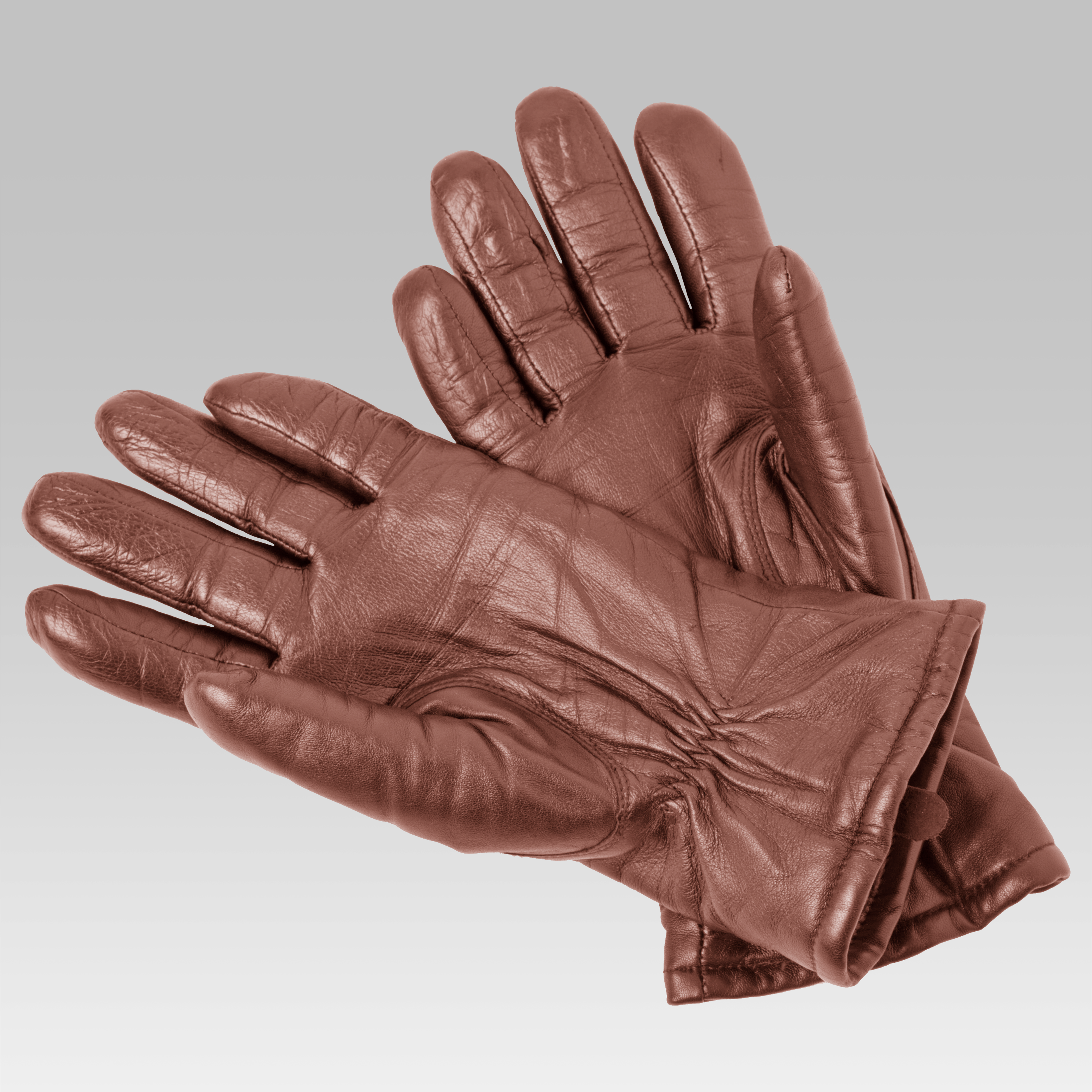A pair of brown leather gloves on a white background, perfect for a template or mockup.
