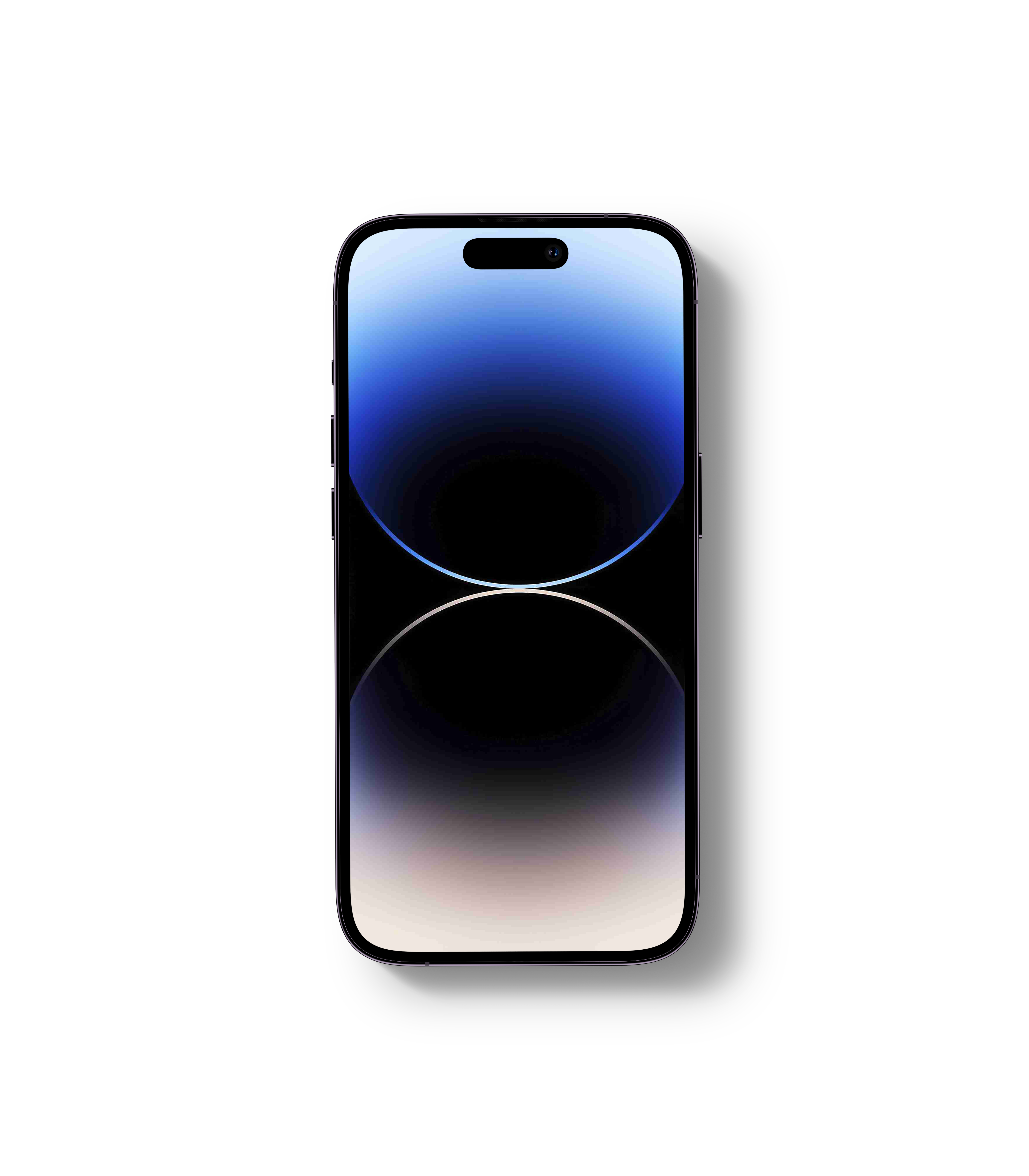 The mockup features a sleek smartphone with a minimalist design, positioned against a pure white background, casting a subtle shadow. The phone's screen displays an abstract gradient of blue, black, and white with a circular pattern, adding a modern touch. Use this mockup to showcase your app designs or website layouts, effectively highlighting them on a premium device. Try our mockup generator now and share your stunning designs on social media to captivate your audience!