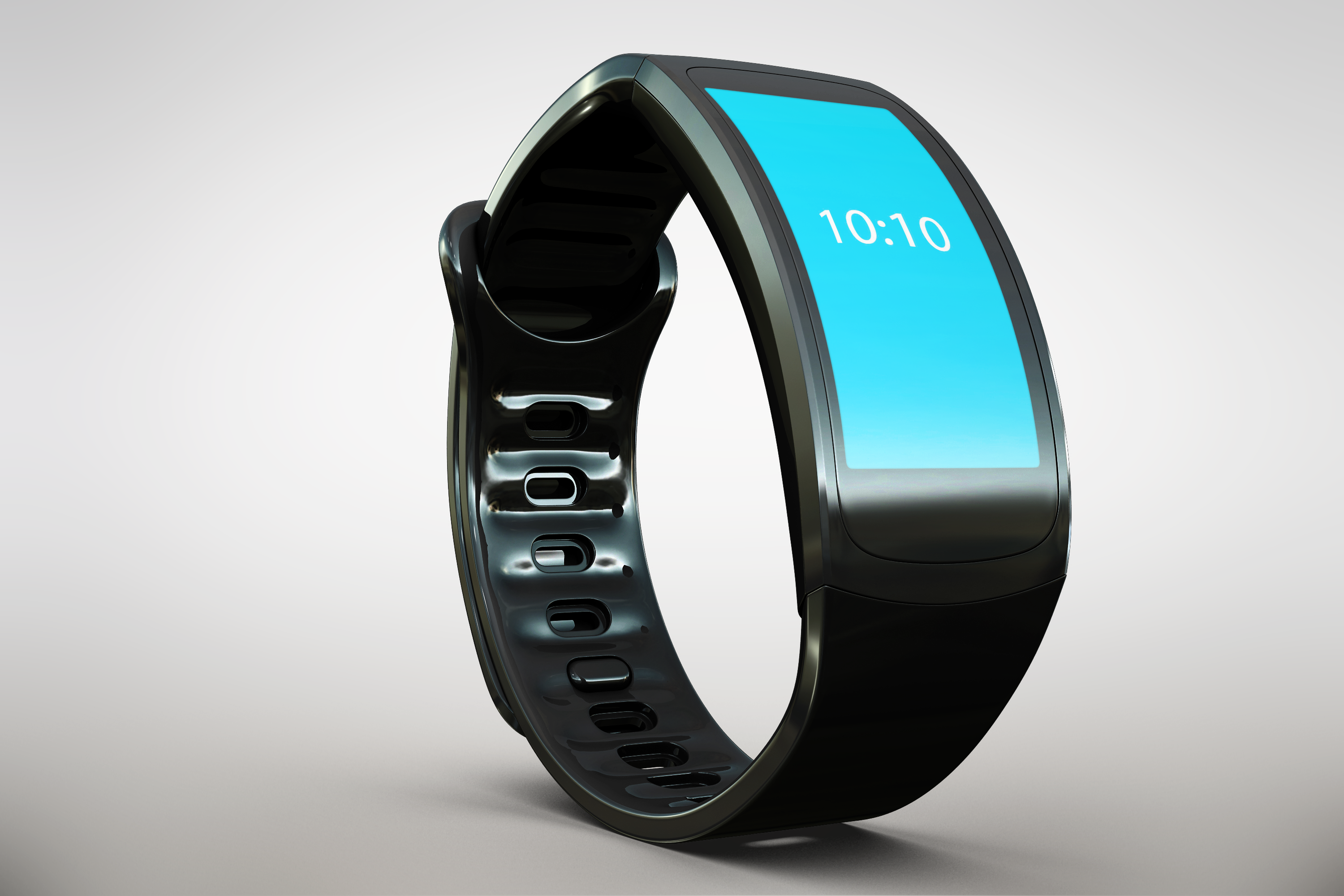 The mockup image features a sleek, modern smartwatch displayed against a simple, gradient grey background. The main object is a black smartwatch with a polished band and a bright blue screen displaying the time. The minimalistic design emphasizes the innovative technology and stylish appearance of the smartwatch. This mockup can be utilized for advertising by showcasing personalized watch faces, fitness tracking screens, or branding elements. Use our mockup generator today and share your unique design on social media!