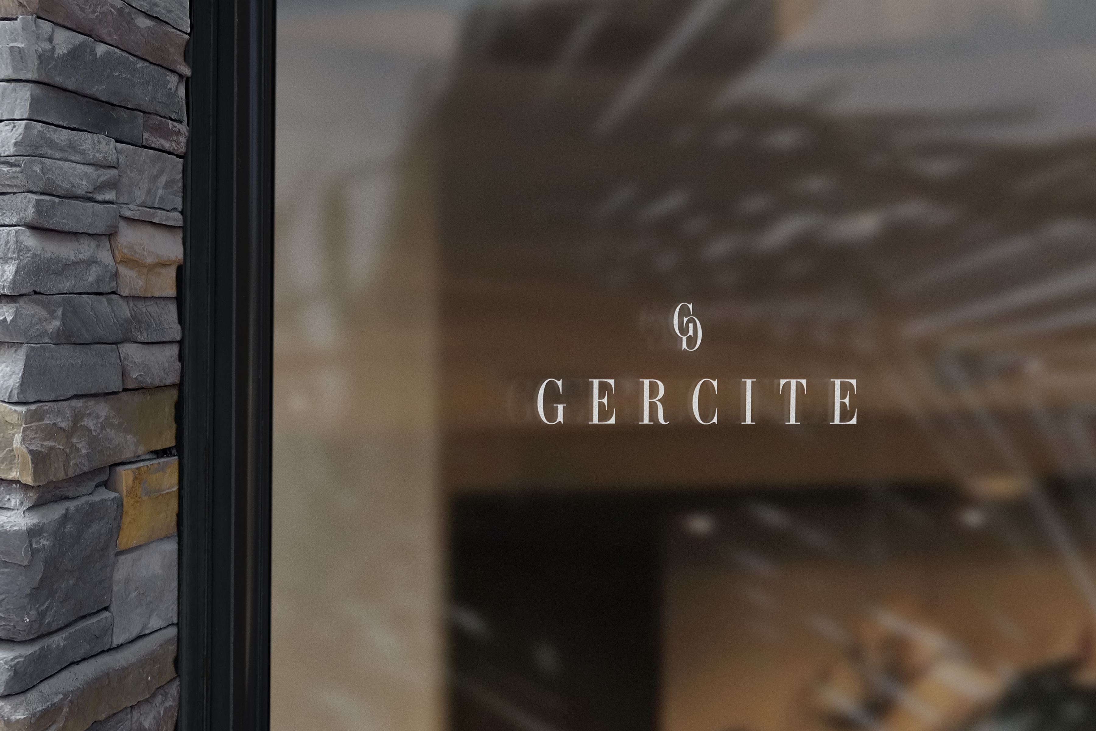 Elegant store entrance with the word "gercite" on the glass door, serving as an ideal mockup.