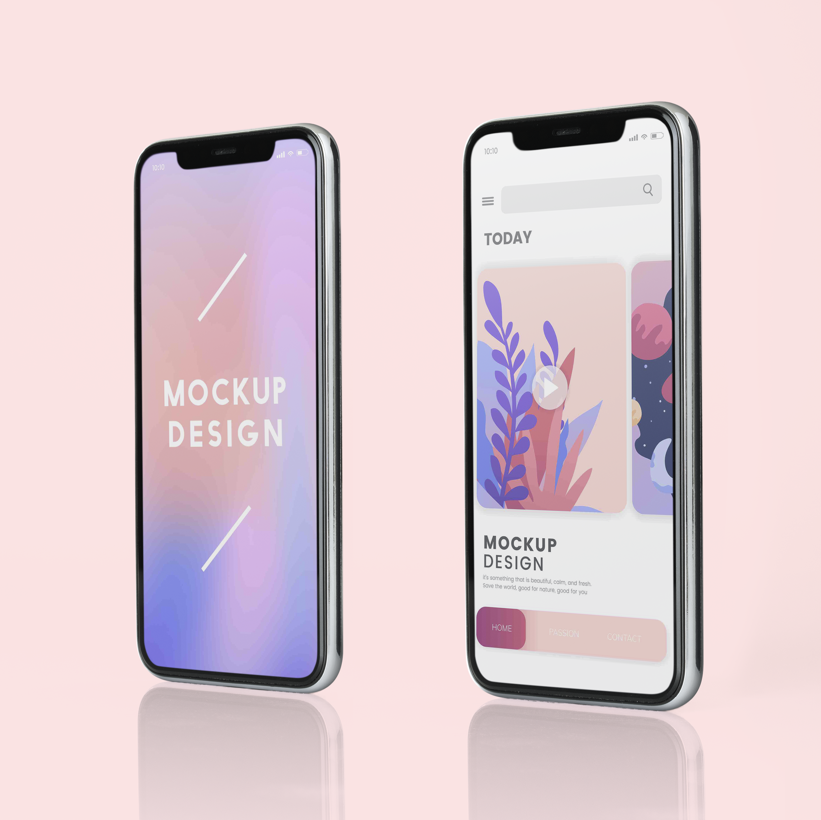 Two iphone x mockup templates on a pink background.